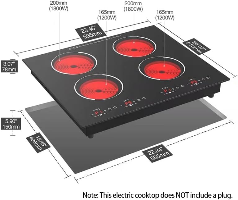 This electric cooktop features 4 burners and offers 9 heating levels, suitable for various cooking methods such as stewing, boiling, steaming, and stir-frying.TIPS: The cooktop is without plug. Built-in Cooktop need to be conected to hard wired(110V).This electric cooktop can be used with any type of cookware, including iron, stainless steel, copper, ceramic, and glass. It is easy to clean and safe and convenient for daily use.The touch panel allows for precise adjustment of heat with just a simple click. In addition, it is equipped with a timer and set temperature, making cooking easy and enjoyable.This electric cooktop has no open flames or electromagnetic radiation, reducing the risk of fire. To ensure the safety of children to the maximum extent possible and also very suitable for the elderly, ensuring the safety of your entire family.