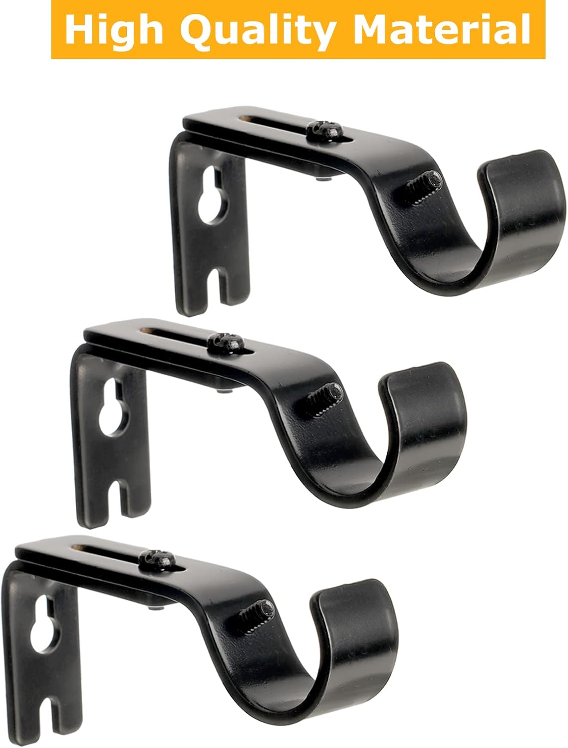 Set of 12 Bracket for Curtain Rod, Curtain Rod Hanging Brackets Wall Mount Heavy Duty, Adjustable Curtain Rod Holders Hardware for Window, Bedroom, Home Curtain rods, Drapery Rod. Feature: ● Curtain rod mounting brackets are made of high quality iron material which with strong hardness. It's very durable and not easy to break, you could use it both indoor and outdoor. ● Classic elegant design is suitable for modern, retro, rustic, and other different styles of home decoration. ● Heavy duty curtain rod brackets can hold up to 25 lbs of weight without damaging the wall. ● Curtain rod bracket accommodate a maximum rod diameter of 1 inch. Perfect for Many Application: 1. Drapery bracket can be used for window curtain rod, drapery rod, door curtain rod, shower curtain rod. 2. Curtain rod hangers also be used for wooden window frame, vertical blinds, inside or outdoor, existing rods. 3. Hang curtain rod brackets are perfect suit for bedroom, living room, dining room, office, or kitchen. Specification: Material: Steel Color: Black Quantity: 12 Package included: 12 x Curtain Rod Bracket for Wall 24 x Screws 24 x Wall anchors