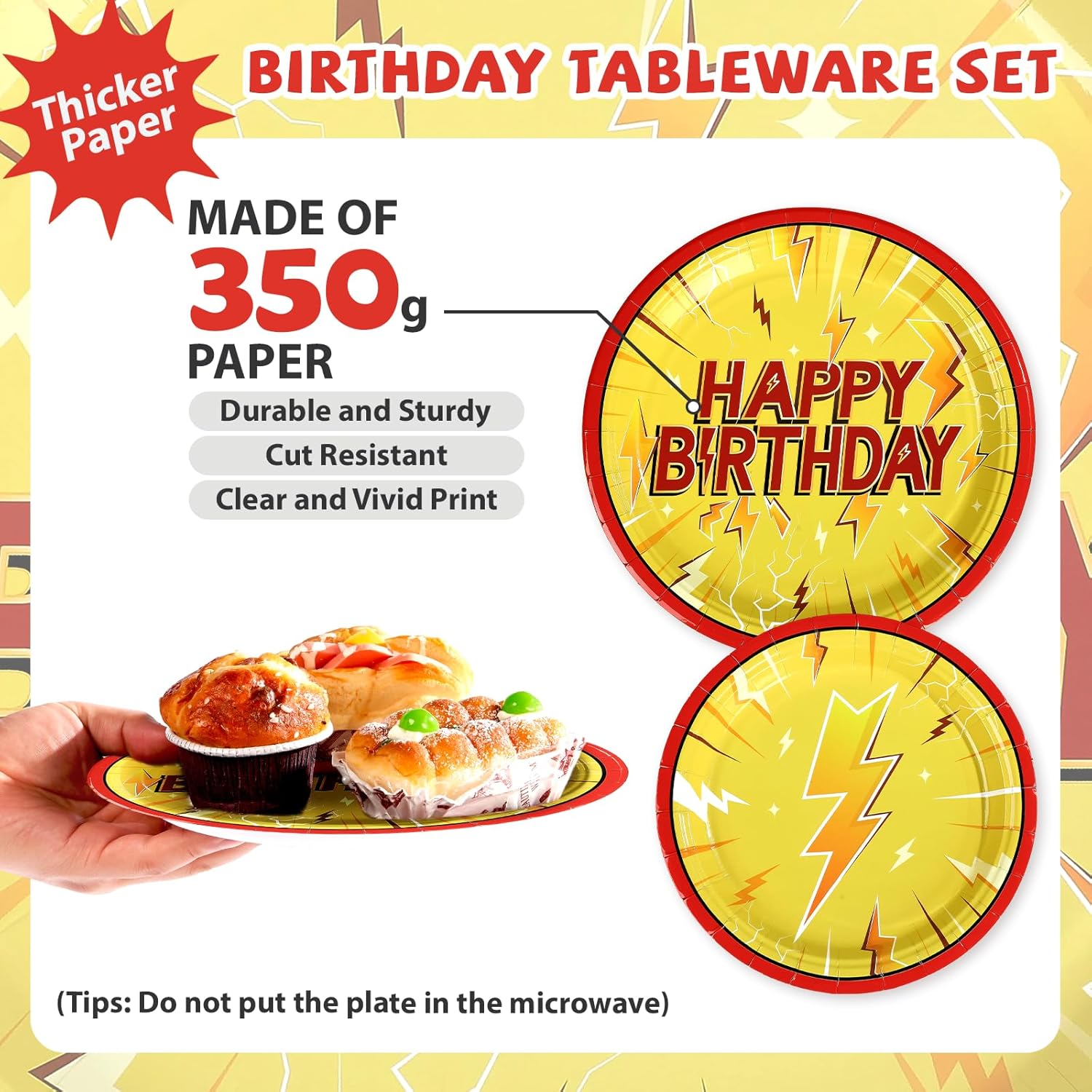 LADVCORP 168 Pcs Lightning Bolt Birthday Party Decorations Lightning Paper Plates and Napkins Yellow Red Cartoon Tableware Set for Light Birthdays Baby Shower Party Supplies, Serves 24