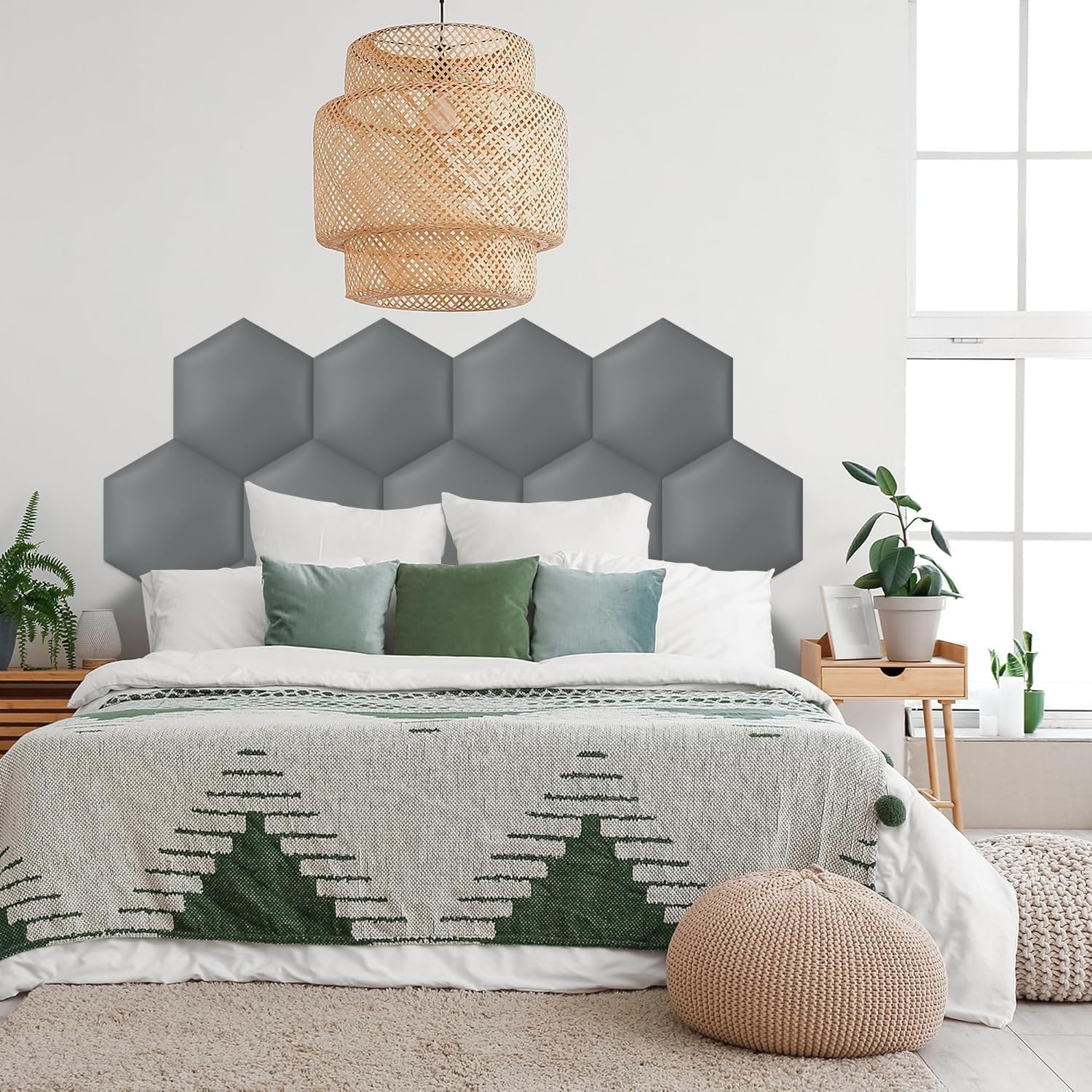 Transform your living space with our elegant hexagonal wall panels, designed to elevate the aesthetic of your home. With a variety of colors to mix and match, you can create a personalized decorative display that reflects your unique style. These versatile wall panels are suitable for living rooms, bedrooms, children's rooms, and hallways, enhancing the atmosphere of any setting.Crafted from high-quality comfort technical cloth fabric, each panel is filled with high resilience sponge, ensuring both comfort and durability. The sturdy E0 grade MDF back panel, measuring 8 mm in thickness, provides a reliable foundation for your design. Available in three sizes—20x23 cm, 25x29 cm, and 30x34.5 cm—these panels have an overall thickness of 3 cm (1.18 inches), making them a substantial yet lightweight addition to your decor.Installation is a breeze. Simply plan your layout on a smooth, dry, and clean surface. Use the included self-adhesive tape to attach the panels effortlessly. For textured walls, we recommend using additional mounting adhesive for extra support (sold separately).Please note that color variations may occur due to different lighting conditions and screen displays. Should you have any questions or customization requests for your wall panels, our customer service team is here to assist you within 12 hours. Elevate your interior design effortlessly with our stunning hexagonal wall panels and create a space you love to come home to.