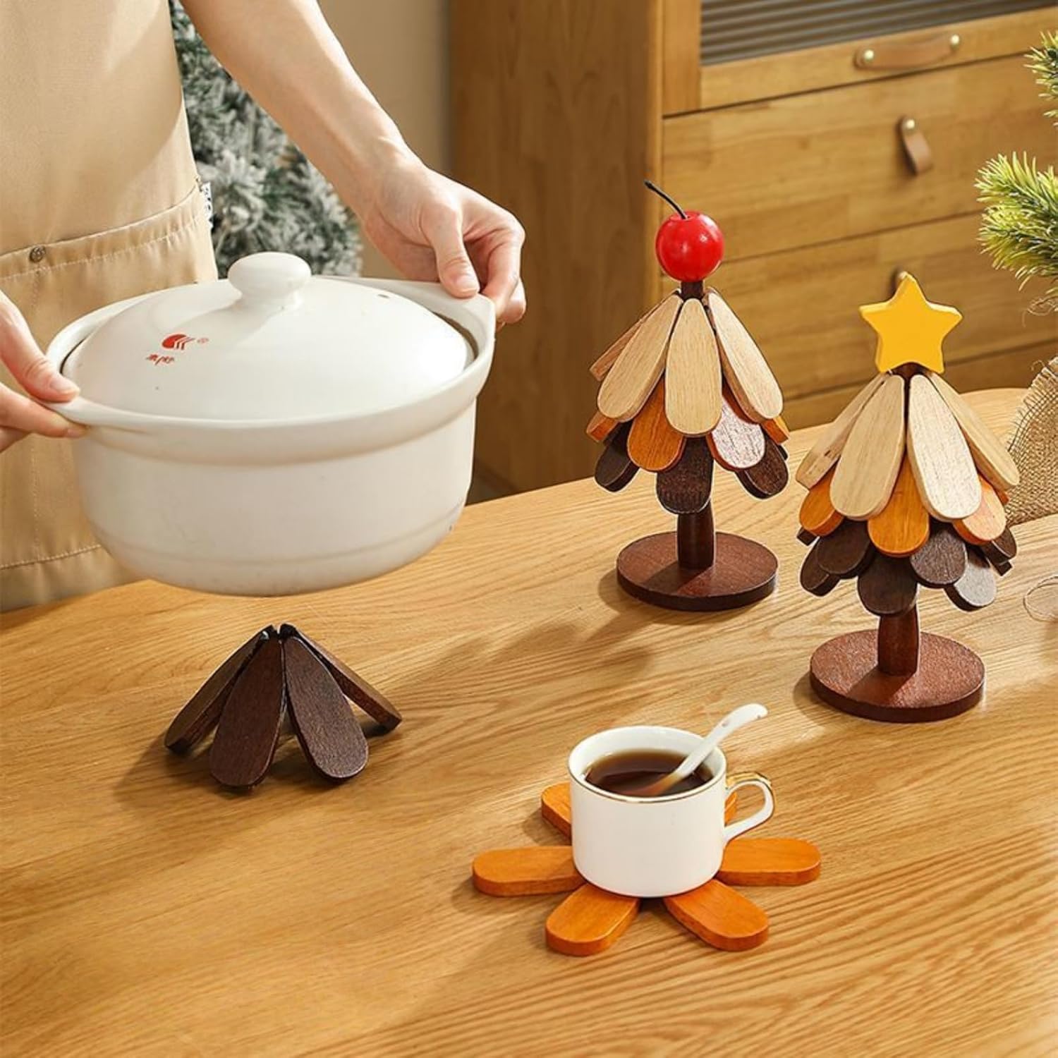 Specifications Product Name: Natural Tree Trivet Set Material: Natural Walnut Wood Color: Walnut / Natural Wood Shape: Tree Design Expanded Diameter: 7.87 in Stand Size: Base Diameter 3.93 in × Height 8.66 in Set Includes: 3–4 Tree Trivets + 1 Holder Tips for Use & Care Wipe clean with a soft damp cloth — avoid soaking or placing in dishwasher. Store folded in the included stand to save space and keep your kitchen organized. Perfect for daily meals, holiday gatherings, or as a thoughtful gift for loved ones. Notes: 1. Please confirm the dimensions and color before purchasing. 2 This product does not include any items not shown in the photo. 3. All dimensions are measured manually. Minor variations may occur, which is normal. Please refer to the actual dimensions. 4. Due to differences in lighting and screens, the product color may vary slightly from the image. Any questions, please feel free to contact us before opening return or case request.
