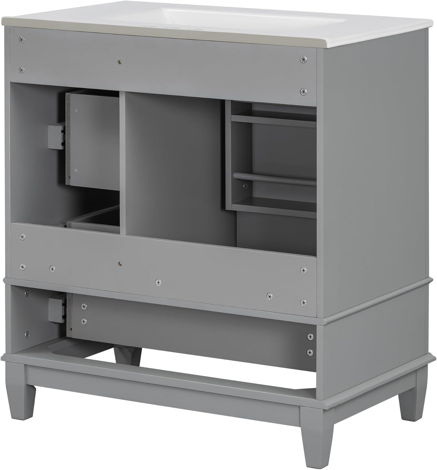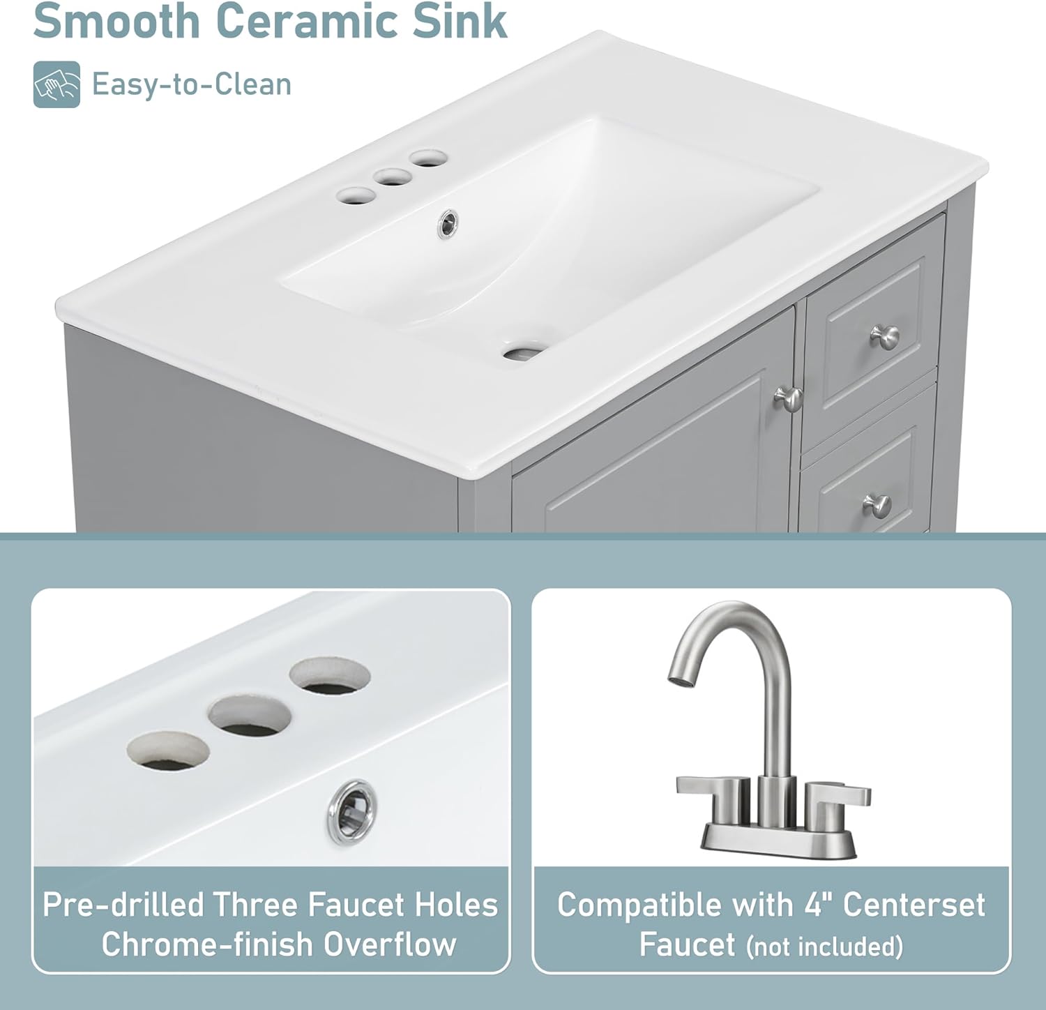 30 Inch Bathroom Vanity with Sink, Single Basin Vanity Cabinet with Soft-Close Drawers & Storage, Modern for Small Bathroom, Apartment, Remodel(Grey)