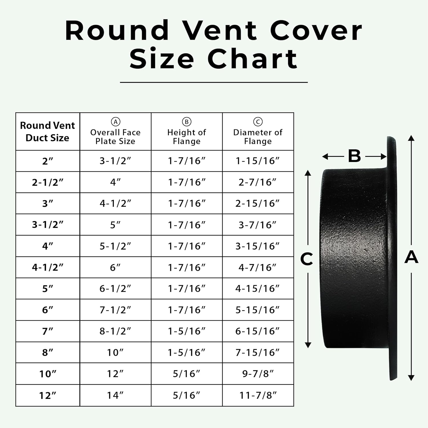 | Size | This size fits a duct opening diameter of 6" |