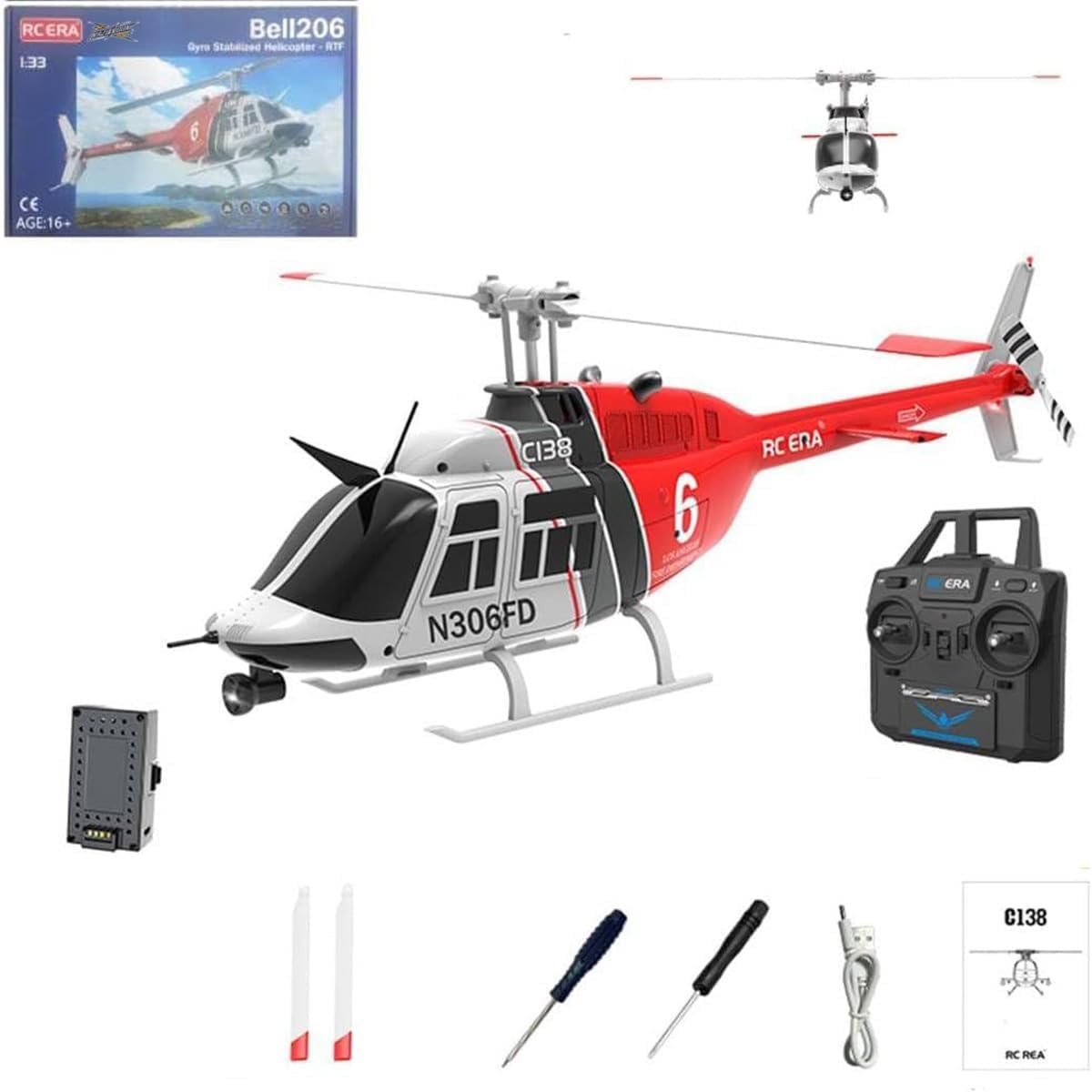 RC 1/33 Scale 2.4G 6CH No Aileron 206 Helicopter with Optical Flow Positioning (RTF Version/Red & Black & White)Specifications: .Color: Red & Black & White .Material: PA/PC .Model: BELL 206 6CH Single-Rotor No-Aileron Helicopter .Rotor Diameter: 306mm .Fuselage Dimensions: 306*79*101mm .Helicopter Battery: 7.4V Lithium Battery .RC Distance: 80-100m .Charging Time: 50min .Usage Time: 11-13min .Product Weight: 400g (Helicoptor: 105g) .Package Weight: 690g .Product Dimensions: 31.2 x 7.9 x 10.1cm .Package Dimensions: 34.5 x 24.8 x 12cm .Packing: Graphic Carton .Ages: 16+