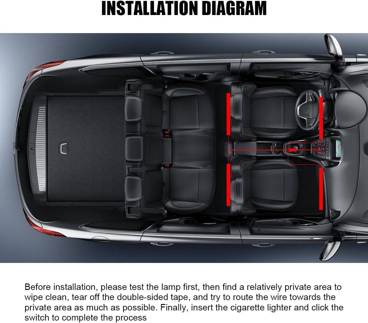 Specifications: Material: ABS, silicone waterproof Color: white, blue, pink, red Size: 59.06inches Weight: 260g/9.17oz Quantity: 1 Voltage: DC 12V Current: 0.12A Power: 10W Features: -High brightness LED beads, this ambient light adopts 12 high brightness LED beads, which can provide bright and even light, thus creating a warm and comfortable lighting space. -One tow four design, the ambient light adopts one tow four design, which is convenient for you to make a flexible layout according to the space in the car and realize ambient lighting. -Safe and stable, the ambient light is designed with a perfect circuit protection system, such as over-current, over-voltage, short circuit and other protection mechanisms, which can ensure the safety and stability of the use process. -Wide applicability, ambient lighting is suitable for a variety of car models and interior styles, whether it is a sedan, SUV or MPV, you can find the right installation position and lighting effect, thus enhancing the overall atmosphere and sense of class in the car.
