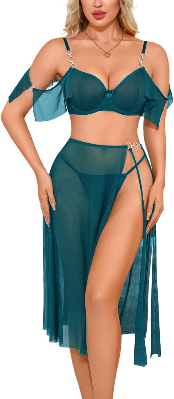 Product Q&A Q: Is this material comfortable? A: Absolutely! This set is crafted from soft, breathable mesh for exceptional comfort. Q: Does this product have any stretch? A: Yes, the fabric has high stretch for a relaxed and flexible fit. Q: Are the bra straps adjustable? A: Yes, they are fully adjustable for a customized fit. Q: Is the bra padded? A: No, it's unpadded for a natural silhouette. It features a soft double-layer lining for comfort and modesty. Q: Will this set shrink after washing? A: No, it is designed to maintain its size and color even after washing. Q: How many items are included in the product? A: The set includes 1 bra, 1 panty, and 1 skirt. Care Instructions Machine wash cold in a laundry bag. Use cold water. Do not bleach.