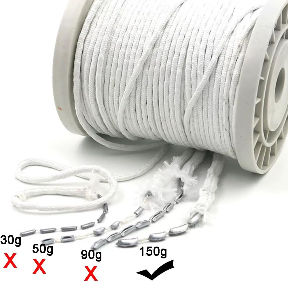 -Extra heavy rope for curtains, nets. 150g per yard.-Fabric covering lead beads,holding your sheer curtain drapes in place or holding the mosquito net in place,Stitched this in to a light weight shower curtain in camper to help keep in in place