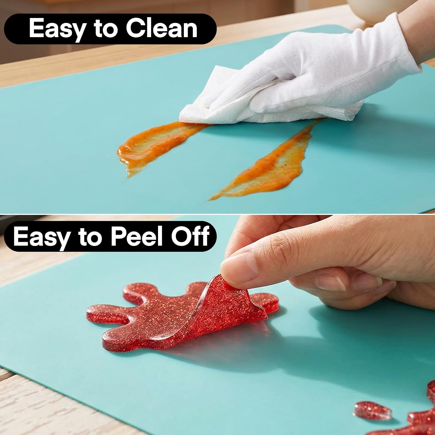 NON-SKID BACKING - 1pcs of X-large silicone sheet measures 23.6x15.7 inches x 1.0 mm / 60 x 40cm x 1.0 mm. A side is smooth surface (face down), the other side is frosted (face up).