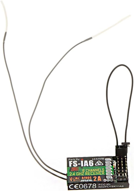Specifications: Channels: 6 Channels Model type: Airplane / Glider / Helicopter Frequency range: 2.4--2.48GHZ Band width number: 160 Transmitting power: not moer than 20dBm RF receiver sensitivity: -105dbm 2.4G modes: automatic frequency second generation digital systems Encoding: GFSK Antenna length: 26mm Input power: 4.0-6.5V DC Dimension: 40 * 21 * 7mm Weight: 6.4g Color: Black i-Bus interface: No Data acquisition interface: None Package information: Package size: 9 * 6 * 4cm / 3.5 * 2.4 * 4.6in Package weight: 20g / 0.8oz Plastic bags Package list: 2 * Flysky FS-iA6 2 * Bind plug