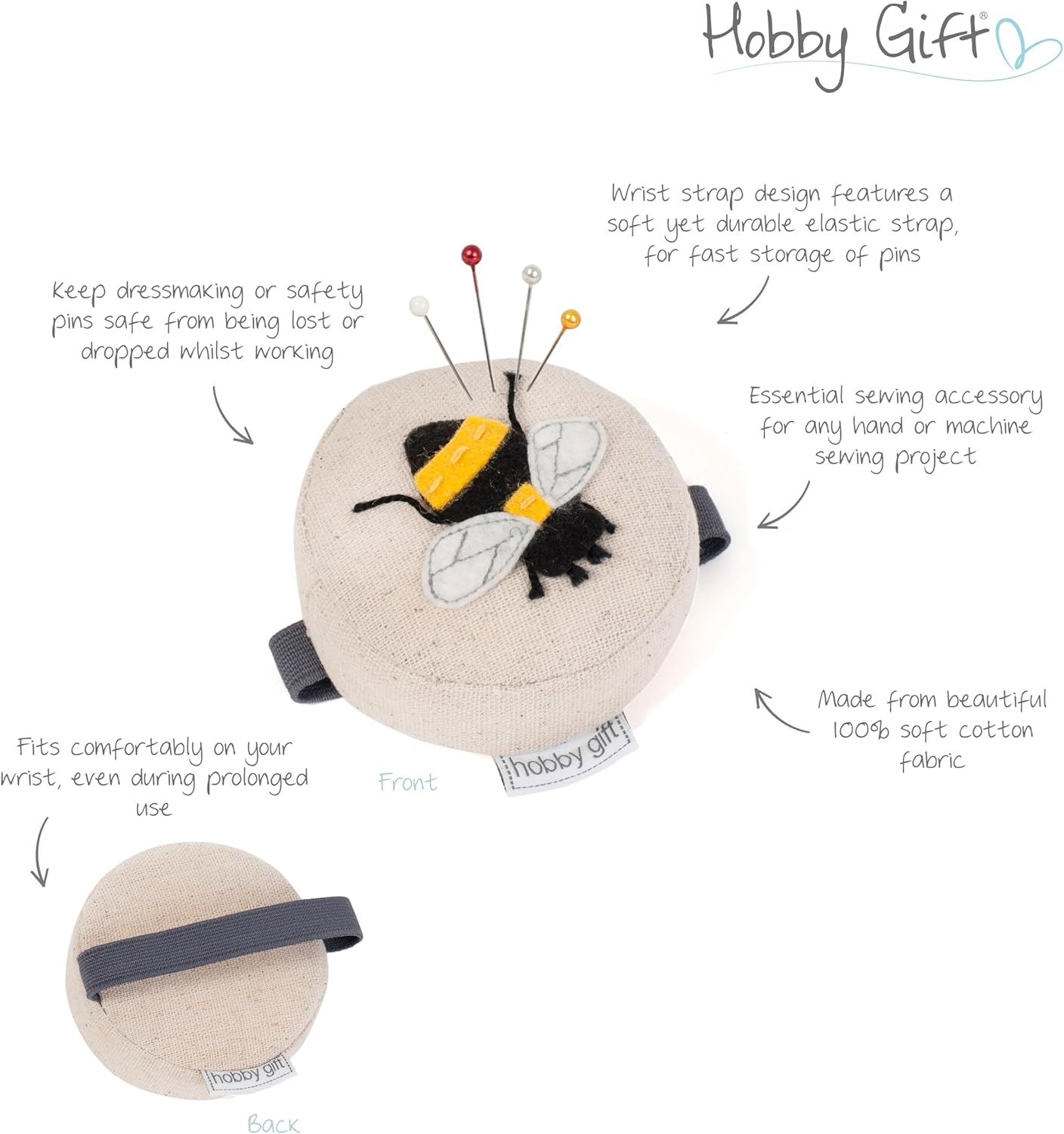 This comfortable wearable wrist pincushion features a soft, durable elasticated strap for a secure and convenient fit, complete with a charming appliqué felt bee design. It’s the perfect solution for keeping your pins tidy and within easy reach while you sew, while preserving their quality and condition. Measuring 3 x 3 x 1.2 inches (7.5 x 7.5 x 3cm), it’s compact and practical and ensuring a stress-free sewing experience. For easy maintenance, simply spot clean as needed.