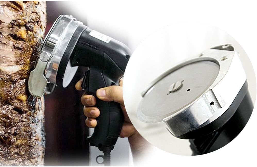 Maximum power: 200W Average power: 80W Speed: 25003000 rpm, half the speed of ordinary machines Voltage: 220V/50HZ 110V/60HZ Blade diameter: 100MM Slice thickness: 08mm adjustable Size: 190 * 110 * 165mm Products include: electric barbecue knives * 1, sharpening stones * 1, hex wrenches * 1 Products include: 1*Electric Kebab Slicer