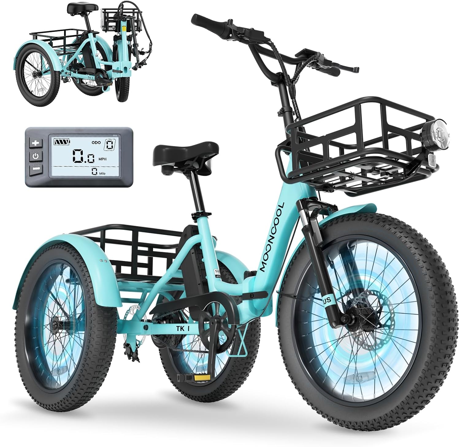 Foldable Electric Tricycle for Adults – Stable, Practical, and Easy to Ride This electric tricycle is designed for adults seeking a stable and reliable riding experience for daily commuting, errands, and leisure rides. Combining dependable power, comfortable handling, and practical storage features, it offers a balanced solution for everyday mobility. Reliable Power & Smooth Performance Powered by a 500W brushless rear motor with 1000W peak output, this electric trike delivers smooth acceleration and dependable performance for urban riding and moderate inclines. The integrated rear differential helps balance rear wheel speed during turns, supporting improved stability and control. Long Range with Convenient Charging Equipped with a 48V 15Ah lithium-ion battery, this tricycle provides an estimated range of 35–70 miles per charge, depending on terrain, rider weight, and riding mode. The removable battery design allows convenient indoor charging, and the included charger fully recharges the battery in approximately 7–9 hours. Comfortable & Easy to Operate Featuring five pedal assist levels and twist throttle control, riders can customize their level of support for different riding conditions. The clear LED display shows speed, assist level, and battery status for intuitive operation, making it suitable for adults seeking stable and user-friendly mobility. Durable Foldable Design Constructed from lightweight yet strong aluminum alloy, this electric tricycle supports up to 450 lbs payload capacity. The foldable frame design allows easier storage in garages, apartments, RVs, or larger vehicle trunks, making it ideal for transportation and travel. Enhanced Safety & Riding Comfort A front suspension fork and wide 20" × 3" tires help absorb road vibrations and improve riding comfort on uneven surfaces. The integrated lighting system, including headlight, brake light, and turn signals, enhances visibility and awareness for safer riding in various conditions. Designed for dependable daily use, this foldable electric tricycle provides a practical combination of performance, comfort, and convenience for modern mobility needs.