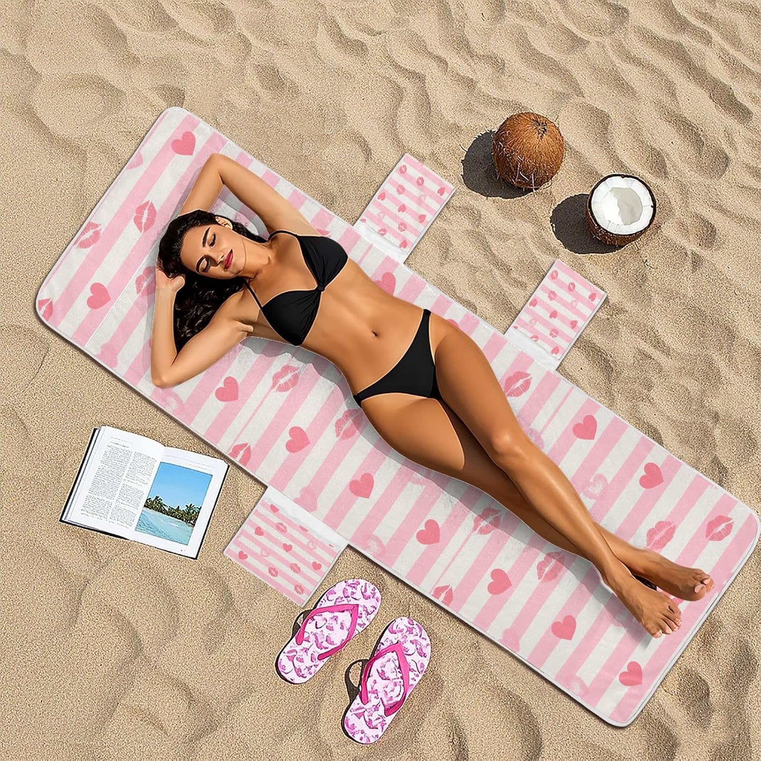 | Color | Pink White Stripes Heart Lip Love |