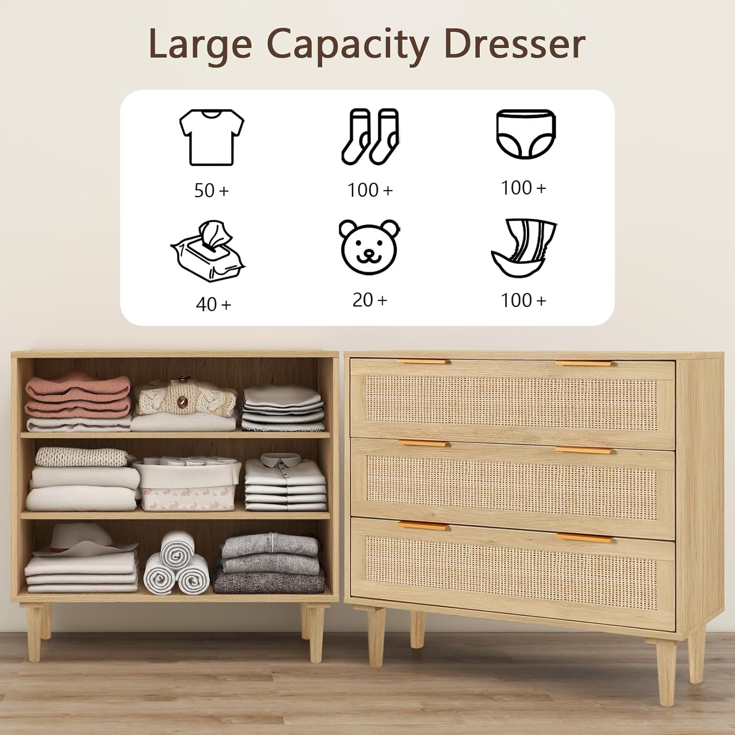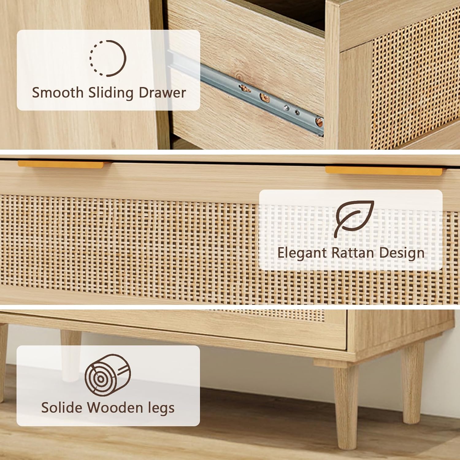 | Additional Features | 3 Drawer Rattan Dresser, Anti-tipping Device,Odorless,Water-Resistant,Scratch Resistant, Boho,Mid Century Modern,Farmhouse,Vintage, Dresser&Nightstand, Smooth Slide Rails,Sturdy Legs |