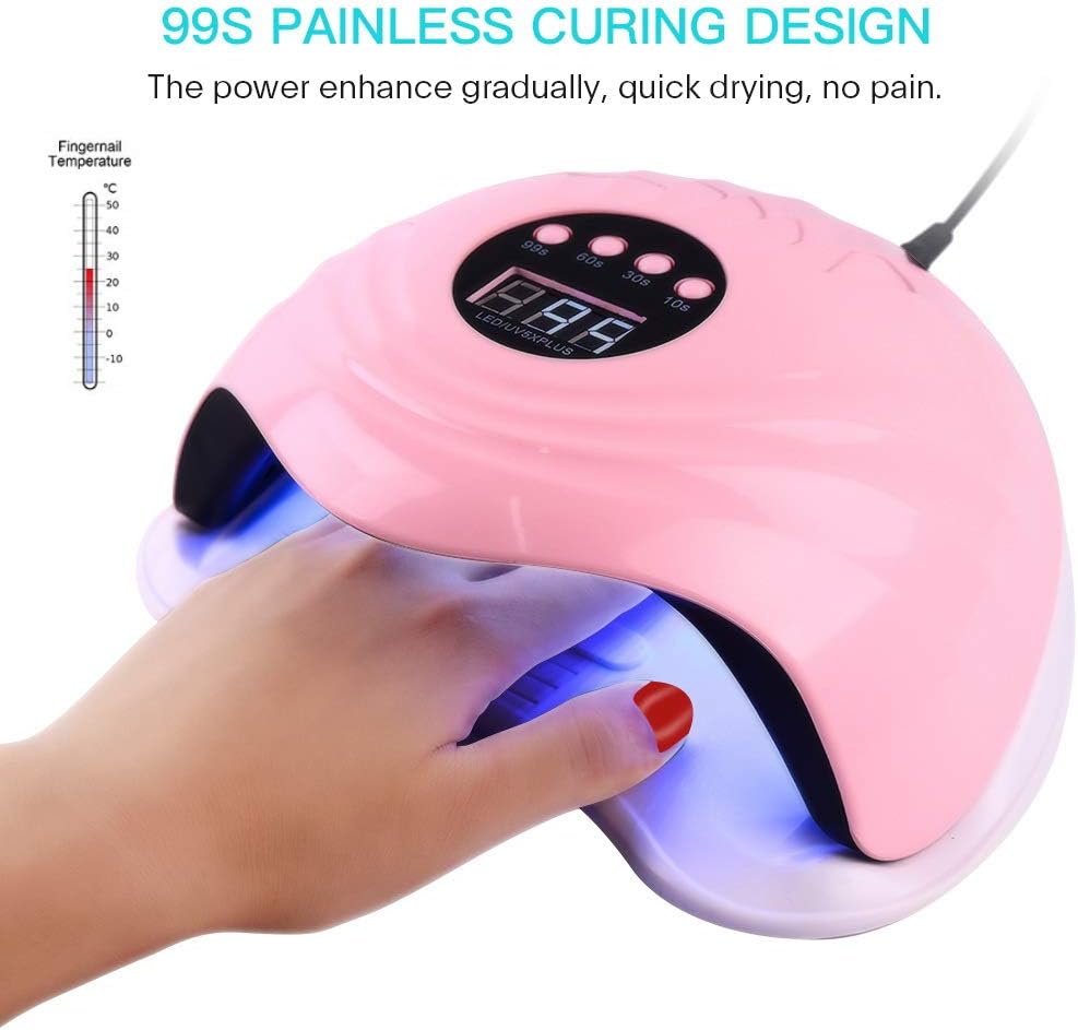 Do You Want to Enjoy Nail Salon at Home?If yes, you just need a LED UV Nail Dryer Lamp, everything can be done! You will own a professional nail salon at home, you can create unique design on your nail as long as you like it. You can invite your girls DIY nail-painting together when you share latest gossip and secret.Why Choose Vanshi Nail Dryer Lamp?1, Healthy UV LED light, no harm to your eyes or skin.2, Auto-infrared sensor, just put hands inside/outside and it'll automatically turn on/off, no need always press the key.3, 4 timer settings make you can choose suitable curing time flexibly according to different gels polishes.4, One button of 99s painless mode relieves you from pain when curing gels.5, Large LCD display screen, easier to read and control curing time at any time.6, Detachable bottom tray, easy to clean the nail dryer.7, Dry all nali gels: nail UV-glue, builder gule, nail polish gel, sculpture gel, gem glue and LED nail gel.8, Fast curing, effective and professional.9, After-sale Assured, we provide 30 days replacement or refund for quality issues.How to use? (Curing time vary based on gel polish brand)1, First polish and clean nails, apply a thin layer of base coat and touch 30s on machine to cure.2, Apply your favorite gels to nails then dry it and repeat this step.3, Last apply the top coat to make nails last longer.4, Don't forget to use cleanser if you feel gel is sticky after curing.Specification:Wattage: 72W; Max 108WTimer: 10S,30S,60S,99S painless modeLED Beads: 36pcsSpectrum: 365+405nmColor: PinkLifespan: 50000HAdapter input: 100-240v 50/60HzOutput: DC24VSize: 8.27x8.86x3.74 inchIdeal for: All nail gelsPackage List:1*Nail Dryer Lamp1*Charger Adapter1*User Manual