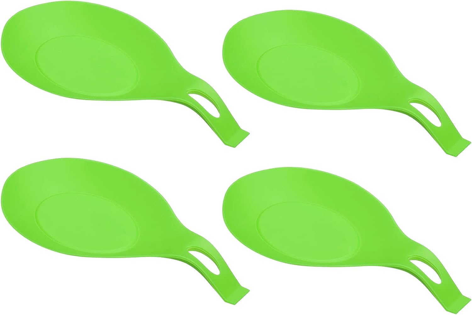 Description:Durable & Heat Resistant - Made of silicone material, lightweight, flexible, not easy to deform and break, withstand high temperatures up to 446° F and has long-lasting durability.Unique Shape Design - The arch design for stable and balanced support prevents the spoon from falling down when in use. Tail hanging hole design, convenient storage and drying, do not occupy space and keep it organized.Keep Countertop Tidy - Makes it easy to catch water droplets and food debris on cutlery and keeps your kitchen clean and your utensils organized during cooking. Using the spoon holder on the counter while cooking, on the table while dining or on the coffee station while making coffee or desserts, to keep cooking utensils in place and protect the counter surface from dirty or hot utensils.Spend Less Time to Wash - Silicone material spoon rest makes them easy to clean. Having this spoon holder for kitchen counter, you will have no more messy spoons laying on your stovetop, countertop, coffee bar, sink, etc. It's saving more time on cleaning the counter.Wide Application - Fit for most sizes of kitchen utensils. Commonly used for holding kitchen utensils, grill utensils, cooking spoons, brushes, ladles, spatulas, tongs, rice spoons, soup spoons, gadgets, table cutlery, hand whisks, etc on the stovetop, counter, dining table to keep clean.Specification:Material: SiliconeColor: BlackOverall Size: 195mm x 95mm x 20mm/7.68" x 3.74" x 0.79"(L*W*H)Temperature Range: -40℉ to 446℉Package Content:16pcs x Spoon Rest